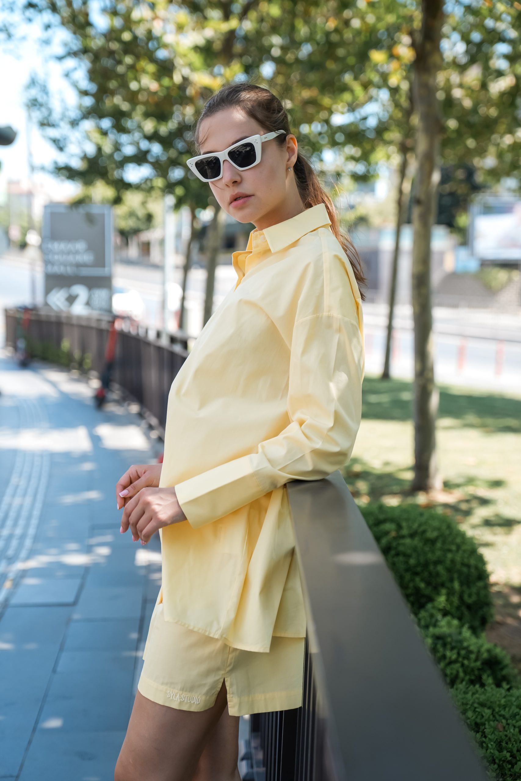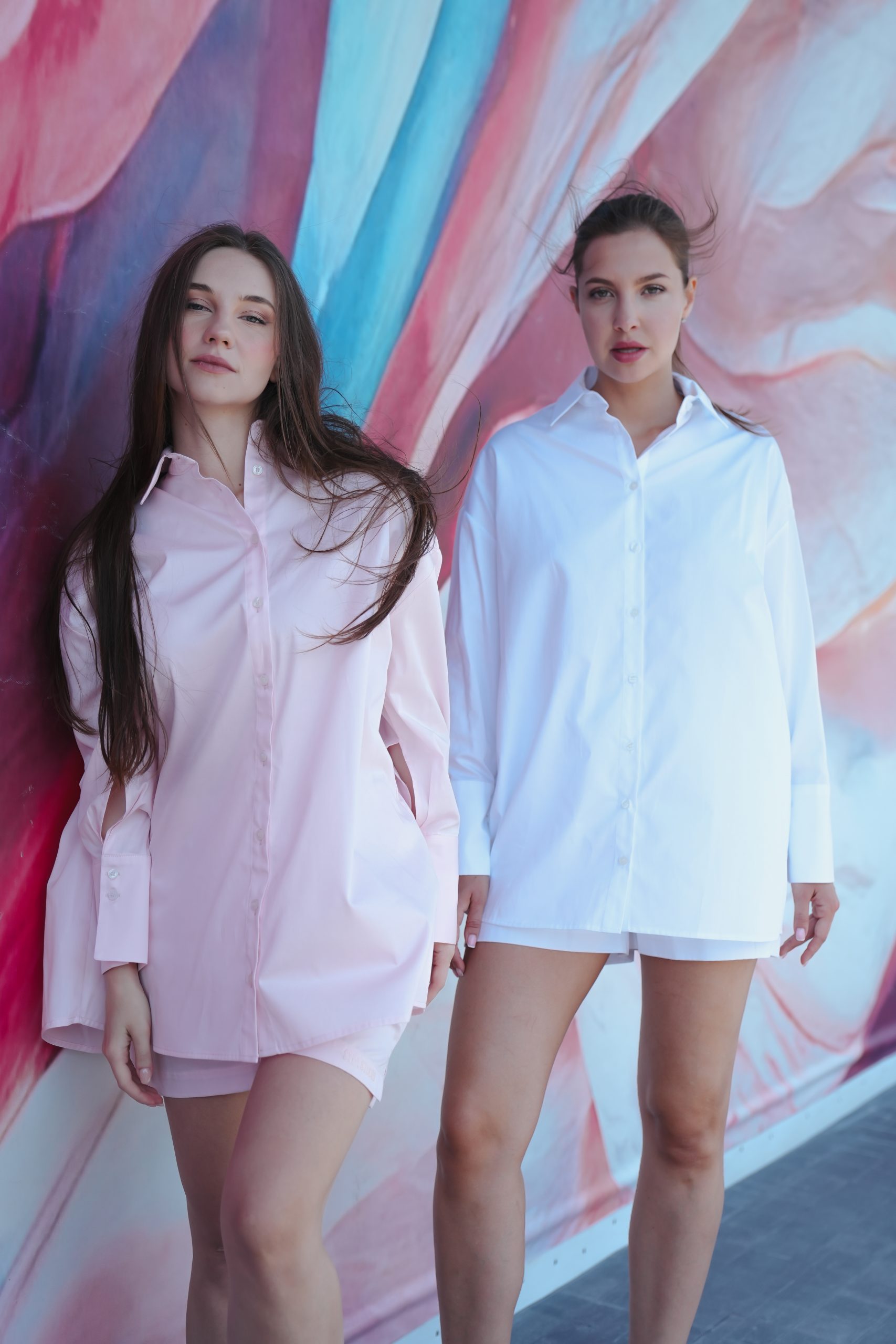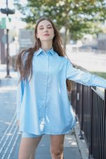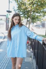 Geniş yaka, geniş manşet detaylı gömlek.